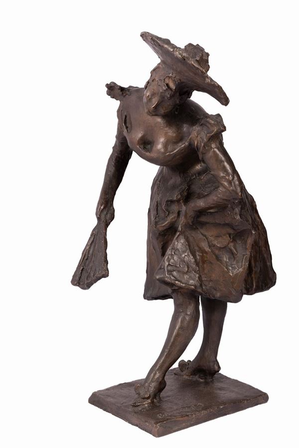 Scultura raffigurante ragazza con ventaglio