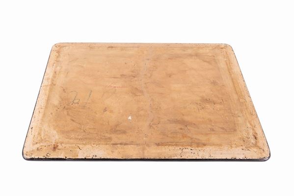 cm 38x56Piano in scagliola dipinta in finto marmo. Rosa dei venti al centro e figure zodiacali sul bordo. Firmata "R. Cipriani"?
