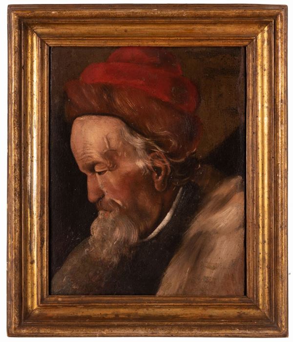 Ritratto di uomo con barba e cappello rosso