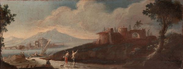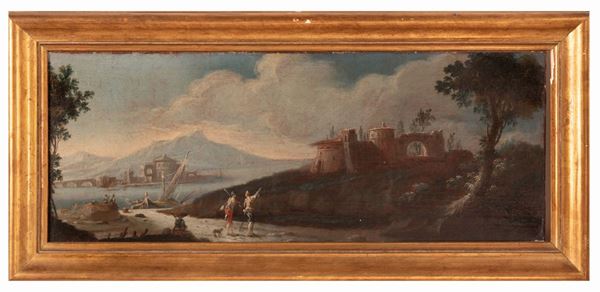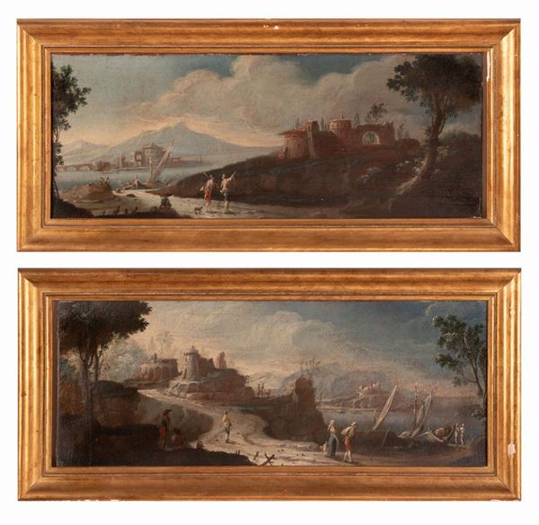 Coppia di capricci con figure e barche