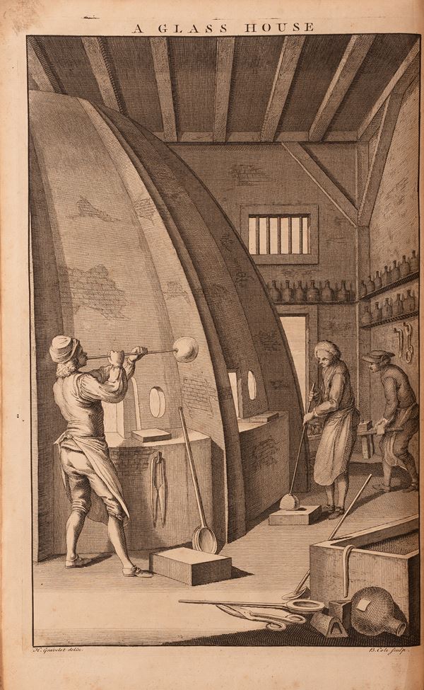 Volume in folio in piena pelle con nervi, testatine, titoli e fregi in oro, parte seconda della famosa enciclopedia inglese, arricchita di bellissime incisioni