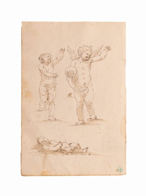 mm 261x179Bellissimo e delicato disegno bifacciale con studi di putti e Angiolini.