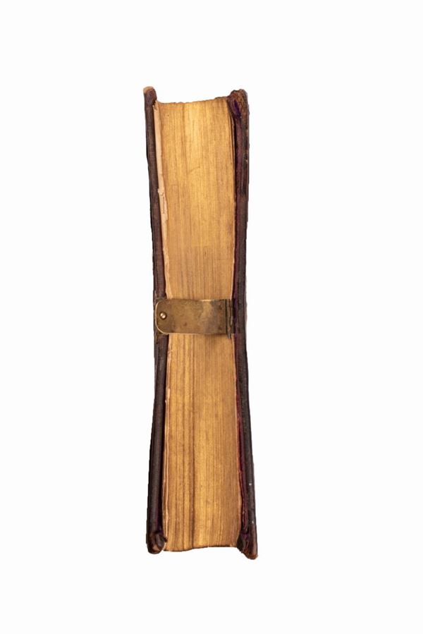 Tagli dorati e bel gancio in ottone di chiusura con fregio al piatto anteriore.