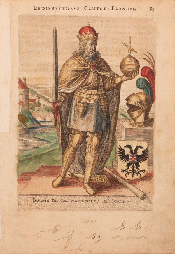 "MARTIN, CORNELIS (1567 1621)LES GENEALOGIES, ET ANCIENNES DESCENTES DES FORESTIERS ET COMTES DE FLANDRE, AVEC BRIEVES DESCRIPTIONS DE LEURS VIES ET GESTES [...], PAR CORNEILLE MARTIN, ZELANDOYS, ET ORNEES DE PORTRAICTS [...] TROVUES ES PLUS ANCIENS TABLEAUX, PAR PIERRE BALTHASAR, ET PAR LUIMESME, MISES EN LUMIERE"