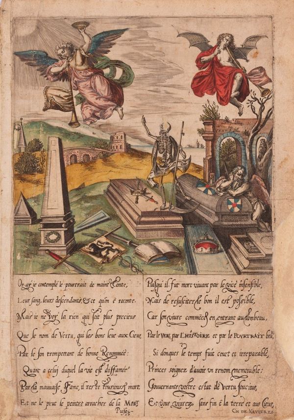 É presente una tavola allegorica della morte con sotto un poema di Charles de Navières.