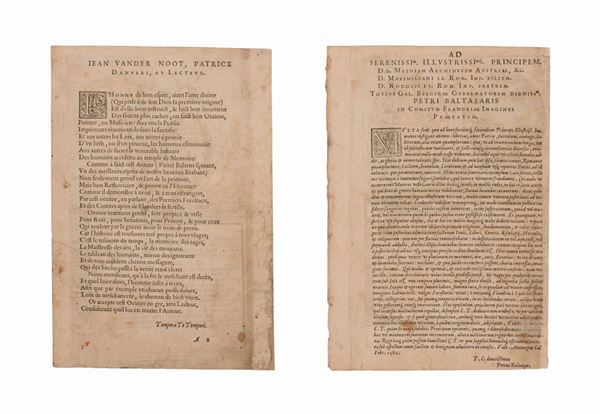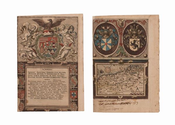Le illustrazioni calcografiche includono: il titolo inciso; una tavola di dedica all'arciduca Mattia d'Asburgo, figlio dell'imperatore Massimiliano II, con le armi dello stesso; una tavola che reca due stemmi ed una carta geografica delle Fiandre;