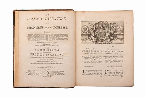 In 4 °, pp. XVI+381+259. Legatura coeva in mz pelle con dorso un po' usurato. Edizione figurata da 40 incisioni f.t. alcune delle quali più volte ripiegate di blasoni inglesi ed europei.