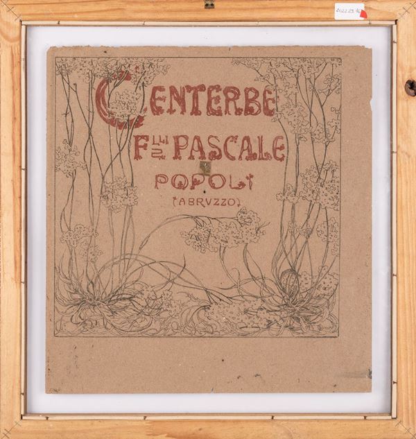 Retro scrittura in rosso Centerbe F,lli Pascale Popoli (Abruzzo) tra rami e fiori