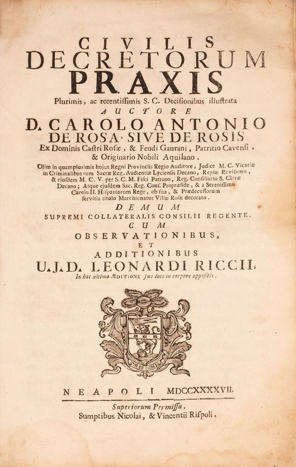Neapoli, 1747 Sumptibus Nicolai e Vincenti Rispoli.