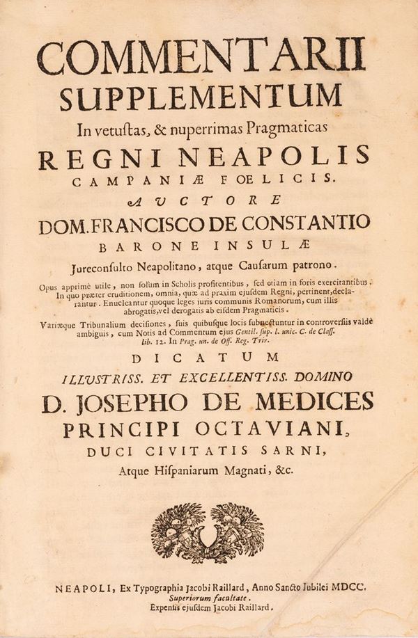 Commentari supplementum in vetustas e nuperrimas pragmaticas regni neapoli francisco de costantio barone insulae