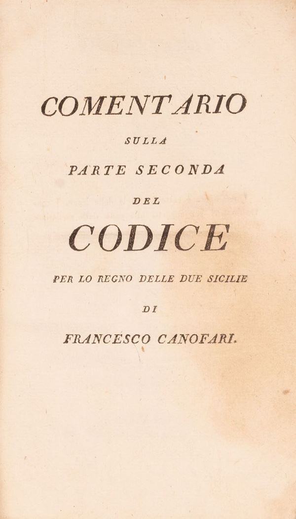 Commentario della parte seconda del Codice per lo Regno delle Due Sicilie ossia sulle leggi penali di Francesco Canofari dedicato a S.M. Ferdinando I.
