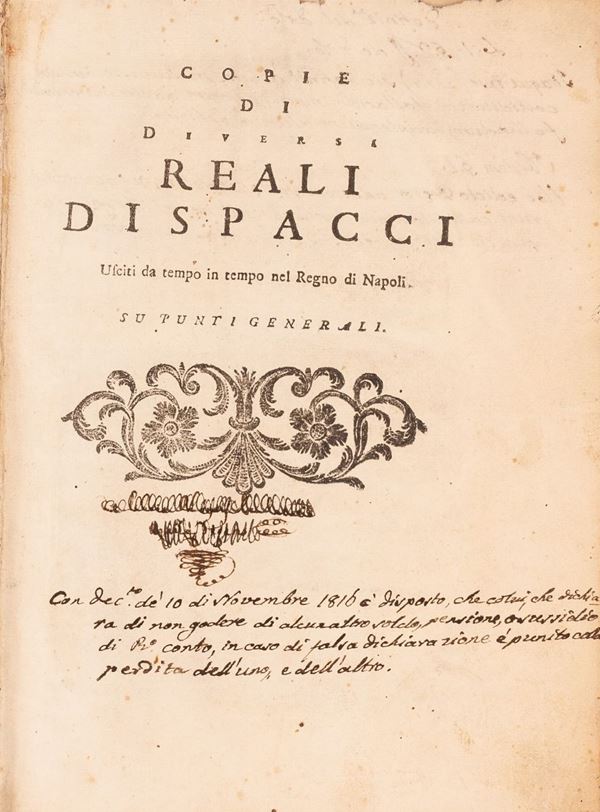 Copia di diversi dispacci usciti in tempo nel Regno di Napoli su punti generali