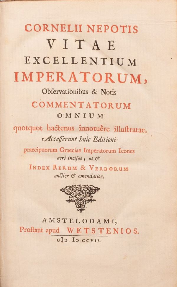 TITOLO: Cornelii Nepotis Vitae excellentium imperatorum, observationibus & notis commentatorum omnium quotquot hactenus innotuere illustratae. Accesserunt huic editioni praecipuorum Greciae imperatorum icones aeri incisae; ut & index rerum & verborum auctior & emendatior