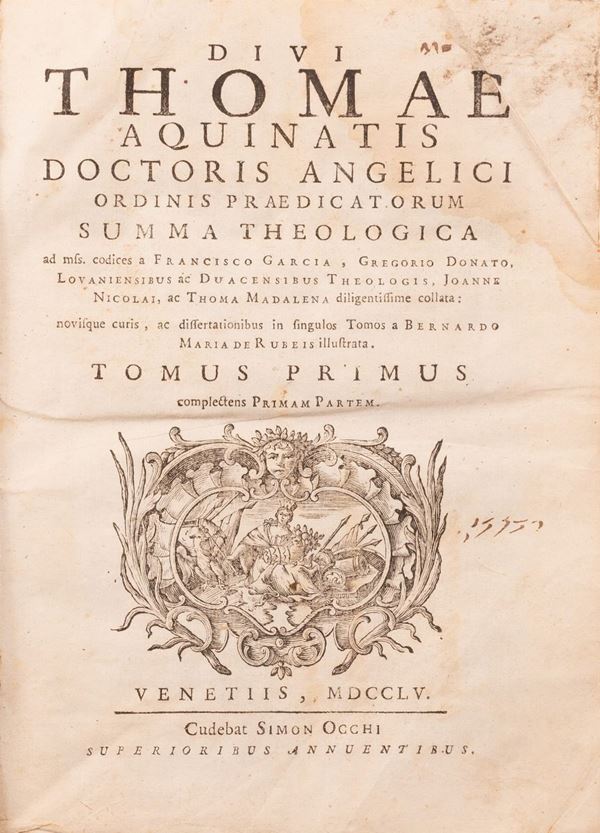 Divi Thomae Aquinatis doctoris angelici Ordinis praedicatorum Summa theologica ad mss. codices a Francisco Garcia ... [et al.] diligentissime collata: novisque curis, ac dissertationibus in singulos tomos a Bernardo Maria de Rubeis illustrata.
