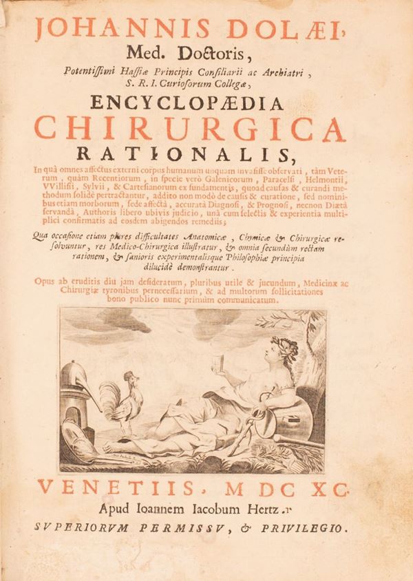 Ioannes Iacobus Hertz, Venezia 1690. Marca tipografica rappresentante allegoria della medicina.