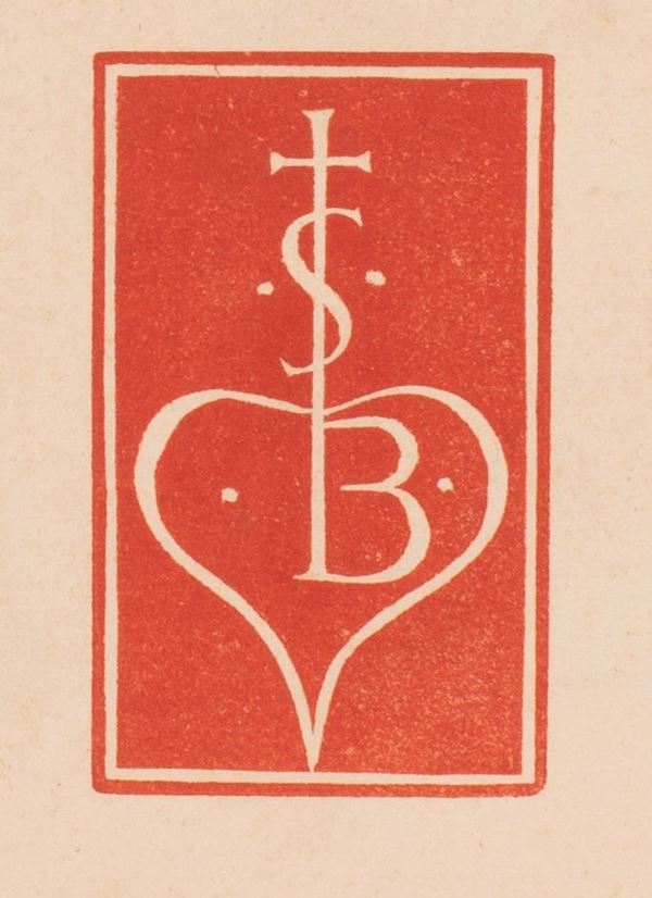 Marchio tipografico dell'editore in rosso in calce alla pagina della "Tabula Titolorum" raffigurante una croce che interseca la lettera S su un cuore che ha al suo interno la lettera B