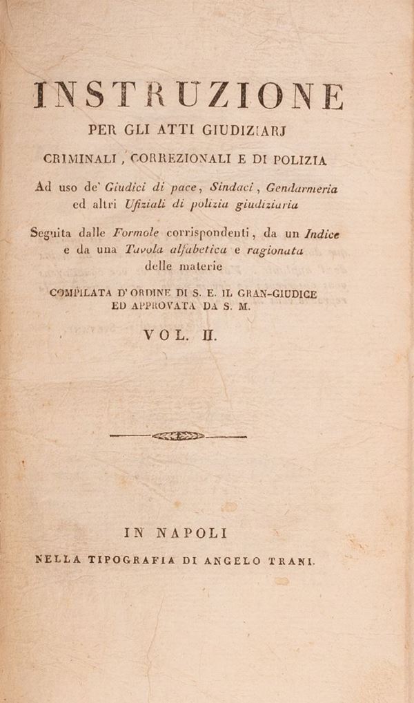 Istruzione per gli atti giudiziari, criminali, correzionali e di polizia ad uso de' giudici di pace, sindaci, gendarmeria ed altri ufiziali di polizia giudiziaria