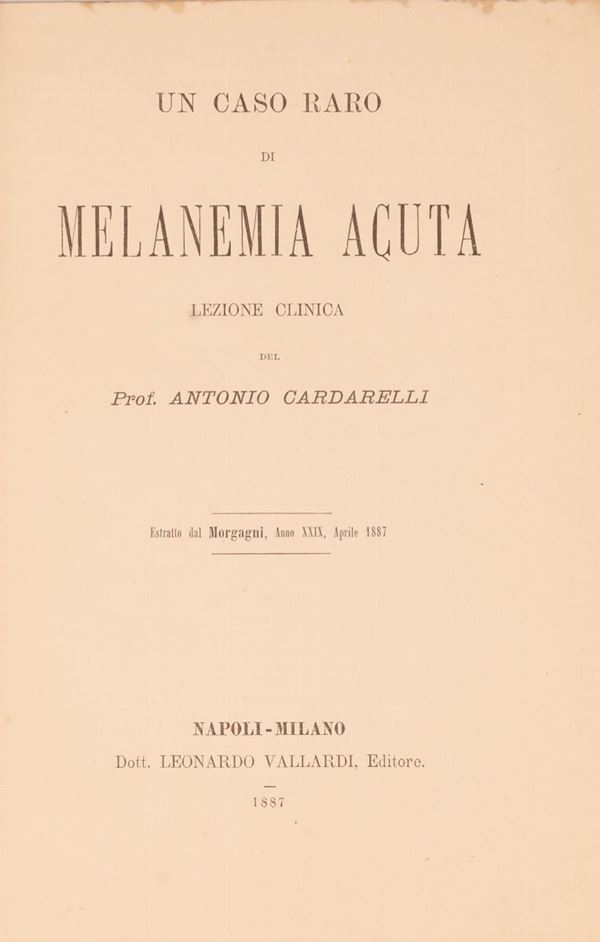 l0) Un caso raro di melanemia acuta. Lezione clinica del Prof. Antonio Cardarelli. Napoli-Milano Vallardi. 1887;