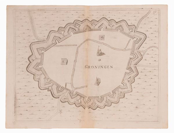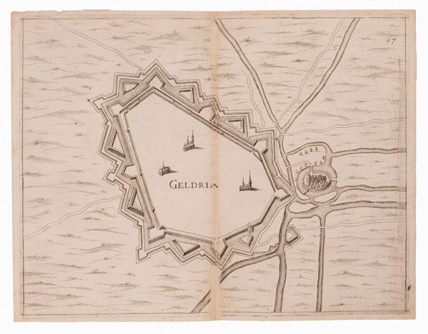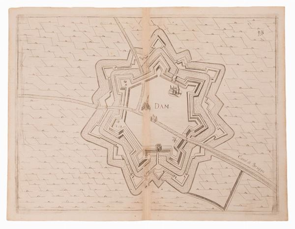 Lotto di 27 incisioni di mappe raffiguranti le piante e le fortezze delle città delle Province Unite del Belgio