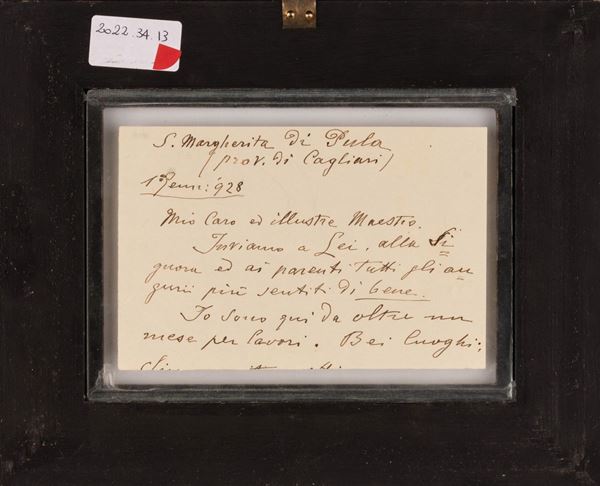 Sul retro: "S. Margherita di Pula. Prov. di Cagliari. 1° genn. '928. Mio caro ed illustre Maestro.