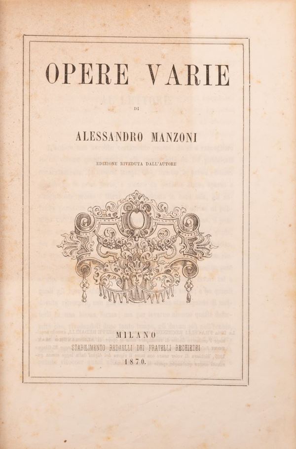 Opere varie di Alessandro Manzoni Edizione riveduta dall'autore. Milano, stabilimento Redaelli dei Fratelli Rechiedei 1870