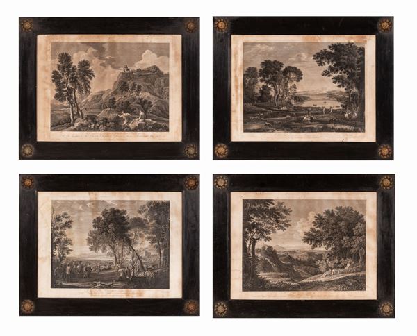 Lotto di 4 incisioni da disegno di Claude Lorrain