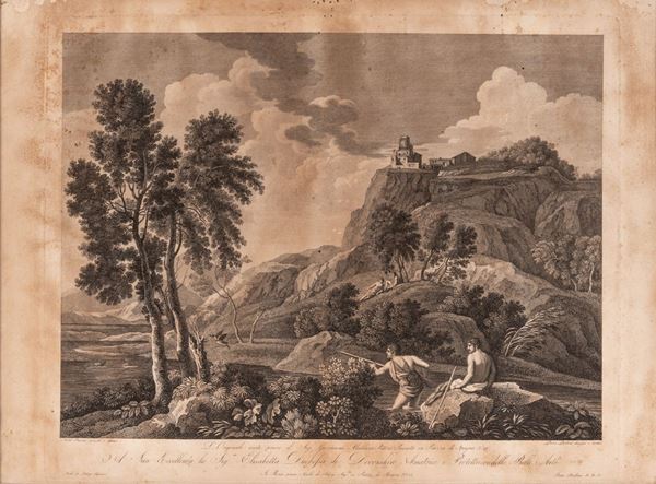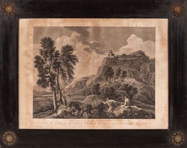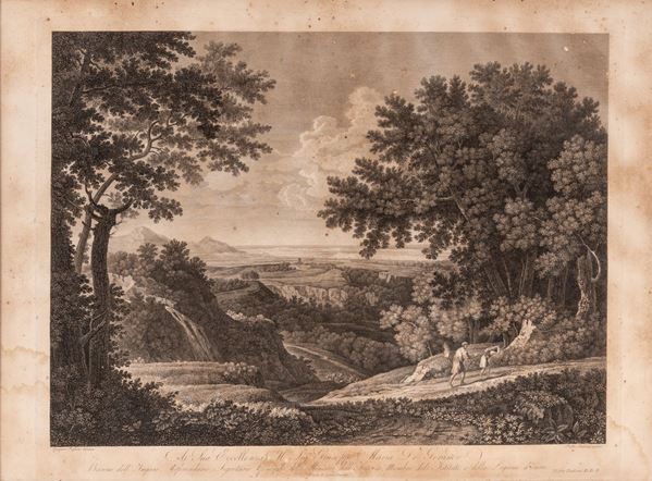 [Paesaggio con Abramo e Isacco]. A Sua Eccellenza Il Sig.re Giuseppe Maria De Gerando. Barone dell' Impero, Referendario, Segretario Genereale del Ministro dell' Interno, Membro del Instituto e della Legione d'onore. Pietro Parboni D. D. D.
