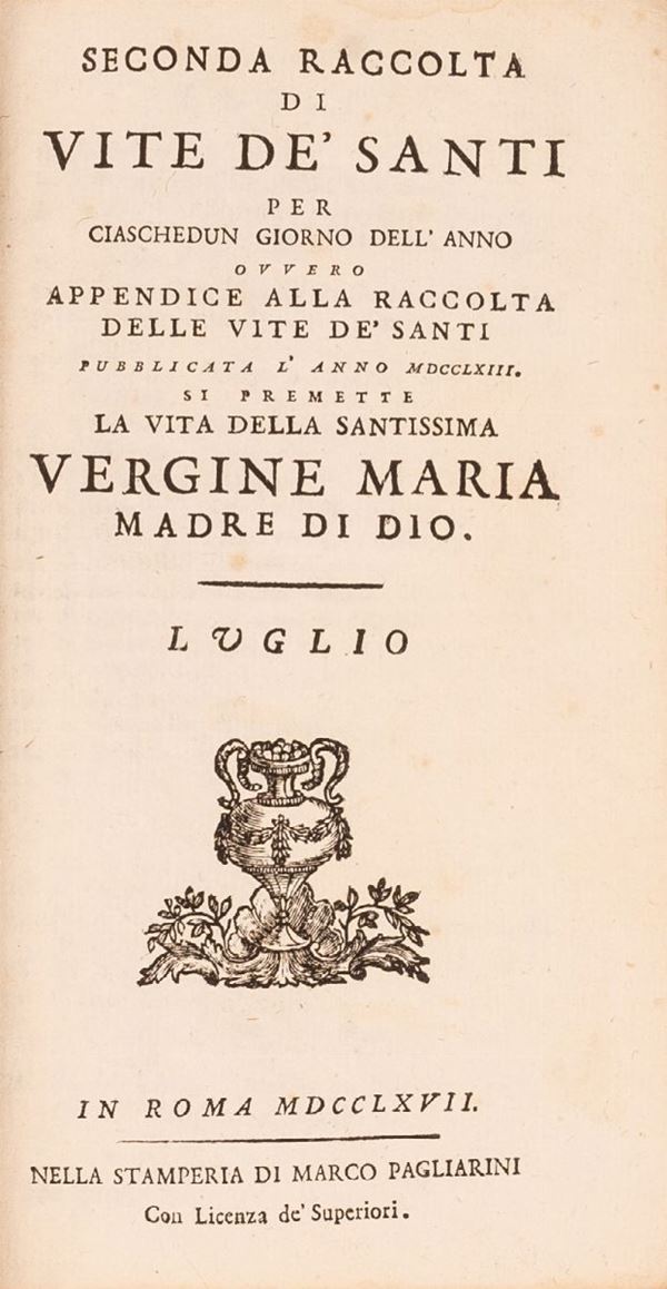 Seconda raccolta di vita de' Santi per chiaschedun giorno dell'anno, ovvero appendice alla raccolta delle vite dei Santi