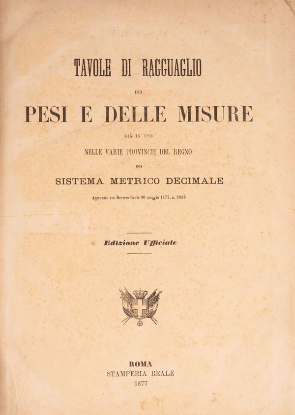 Tavole di ragguaglio dei pesi e delle misure già in uso nelle varie provincie del Regno Stamperia Reale 1877