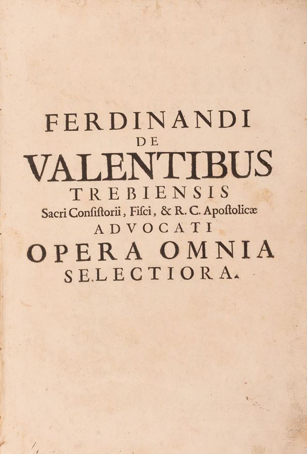 FERDINANDI DE VALENTIBUS TREBIENSIS Sacri Consistorii, Fisci, & R. C. Apostolicae ADVOCATI OPERA OMNIA SELECTIORA.: VOTA PRO VERITATE De Ultimus Ad Rem Ecclesiasticam pertinentia. TOMVS TERTIVS, Volume 3