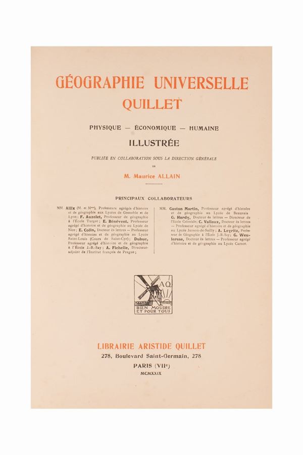 Geografia Universale Illustrata Quillet. Fisico - Economico - Umano. sotto la direzione di Maurice Allain. Libraire Aristide Quillet, 1928