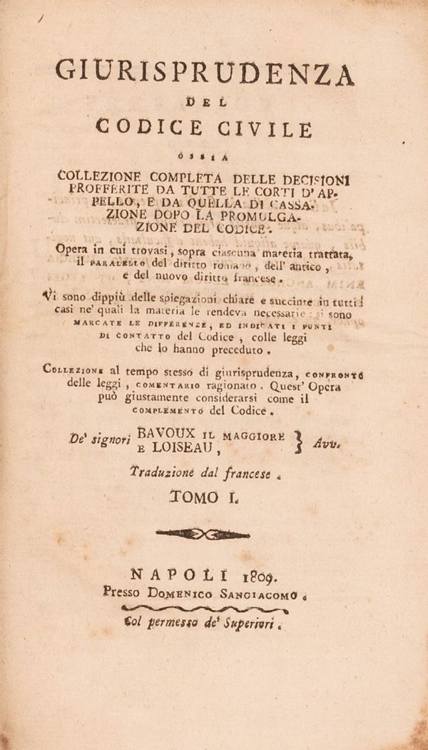 Collezione completa delle decisioni profferite da tutte le corti d'appello e da quelle di cassazione, dopo la promulgazione del codice (..) dei signori Bavoux il Maggiore e Loiseau.