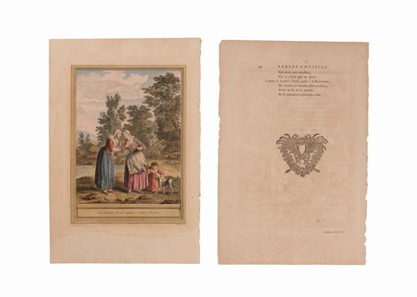 cm 29 x 20 cm; cm 41 x 27 cmJB OUDRY FABLE LA FONTAINE LES FEMMES ET LE SECRET – GRAVURE ORIGINALE XVIIIÈME