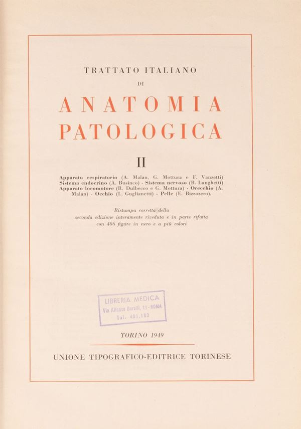 b) Trattato Italiano di Anatomia Patologica, Torino, 1949. Unione Tipografico Editrice Torinese. Due volumi;