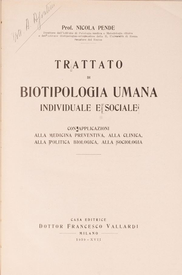 c) Nicola Pende. Trattato di Biotipologia Umana. Casa Editrice Vallardi. Milano. edizione telata;