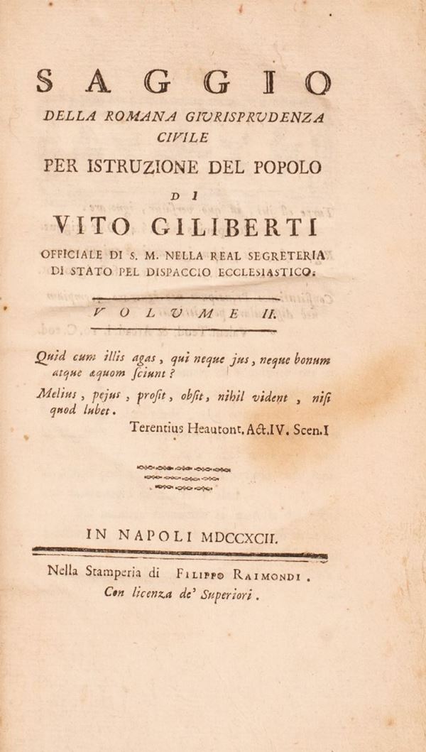 Saggio della romana giurisprudenza civile per istruzione del popolo di Vito Gilberti (Vol II)