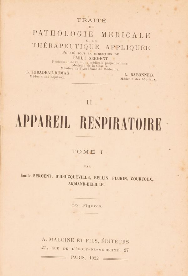 TRAITE DE PATHOLOGIE MEDICALE ET DE THERAPEUTIQUE APPLIQUEE E APPAREL RESPIRATOIRE. A. MACOINE ET FILS, EDITEURS, PARIS, 1922