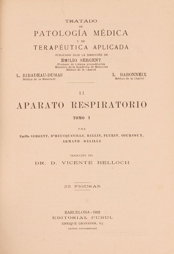 TRATADO DE PATOLOGIA MEDICA Y DE TERAPEUTICA APLICADA PUBLICADO BAJO LA DIRECCION DE EMILIO SERGENT. APARATO RESPIRATORIO. TOMO I E TOMO II