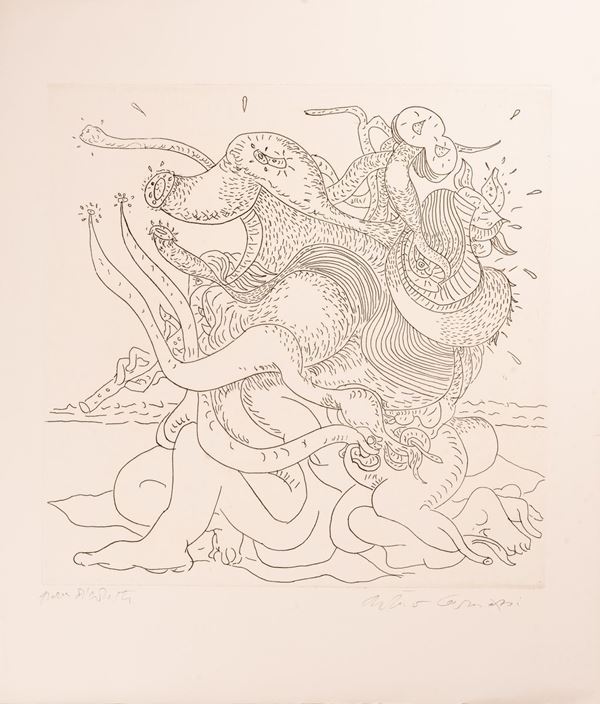 AcquefortiCartella contenente 3 acqueforti di cm. 63x53, prova d'autore.