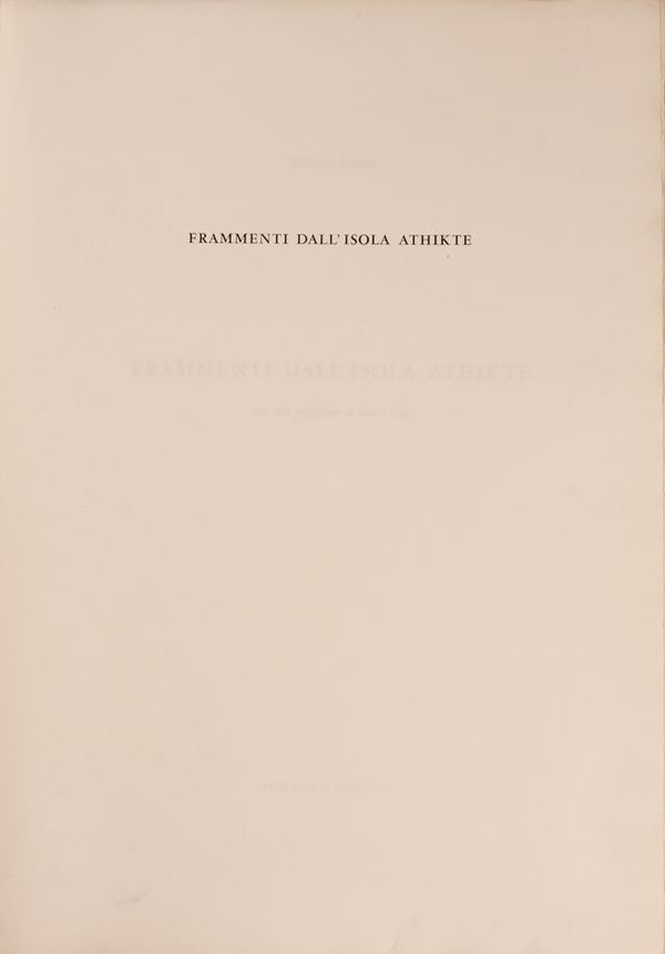 Frammenti dall'isola Athikte. Prefazione di Enzo Paci. 13 litografie originali a piena pagina di Salvatore Fiume stampate sul torchio a mano.Poesie [..]