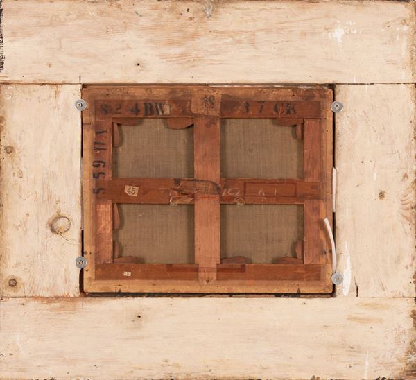 cm 40x50; con cornice cm 75x85Dipinto originariamente realizzato ad olio su tavola. Soggetto a trasporto della pellicola pittorica da tavola a tela presumibilmente alla fine del XIX secolo.