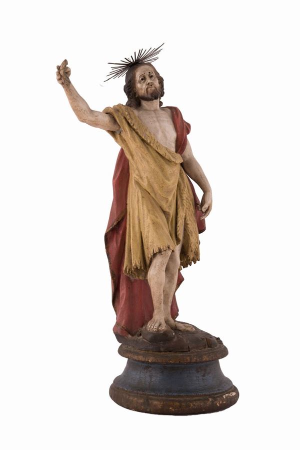 altezza cm 52Santo raffigurato nell'atto del Battesimo con conchiglia.