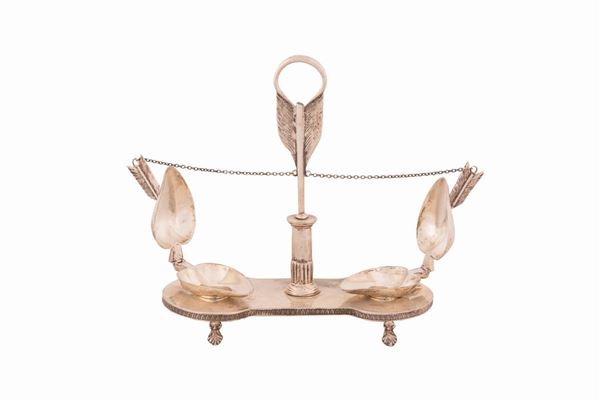 cm 20x20x10Manico a forma di freccia e saliere a forma di cuori trafitti