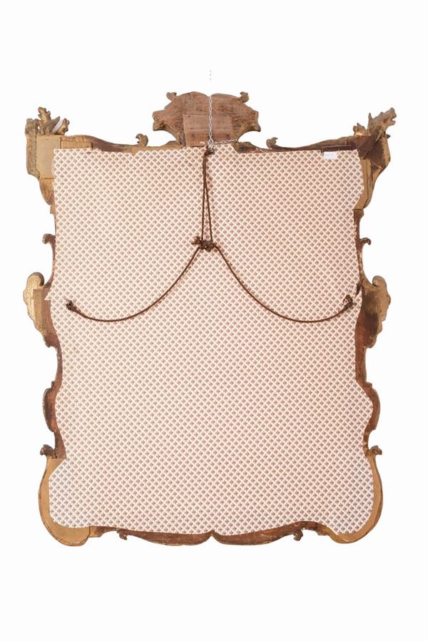 cm 130x110Specchio non pertinente. Cimasa a forma di stemma nobiliare.
