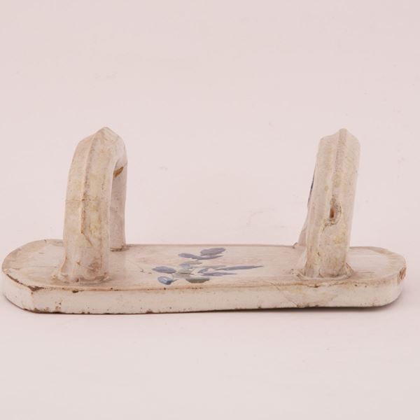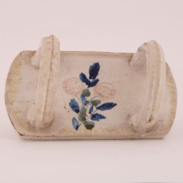 Schiacciapatate in maiolica con decoro floreale stilizzato