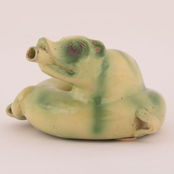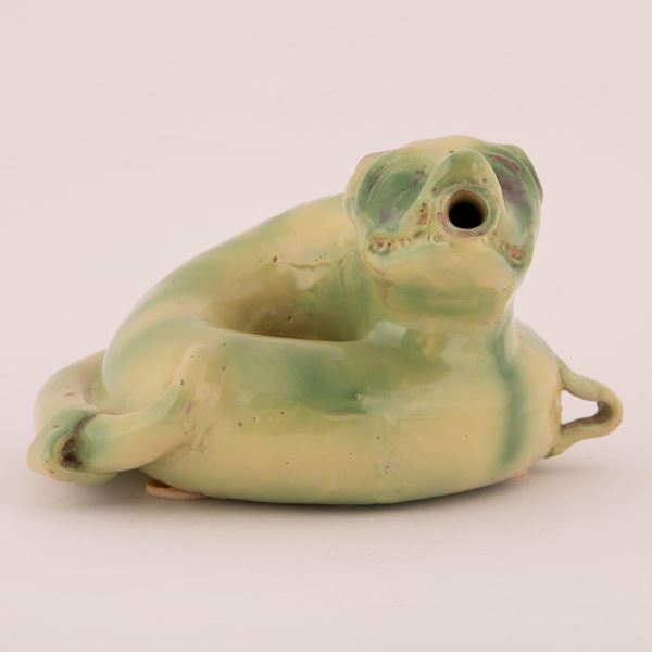 Fiaschetta in maiolica del tipo "da pellegrino", conformata in guisa di serpente arrotolato