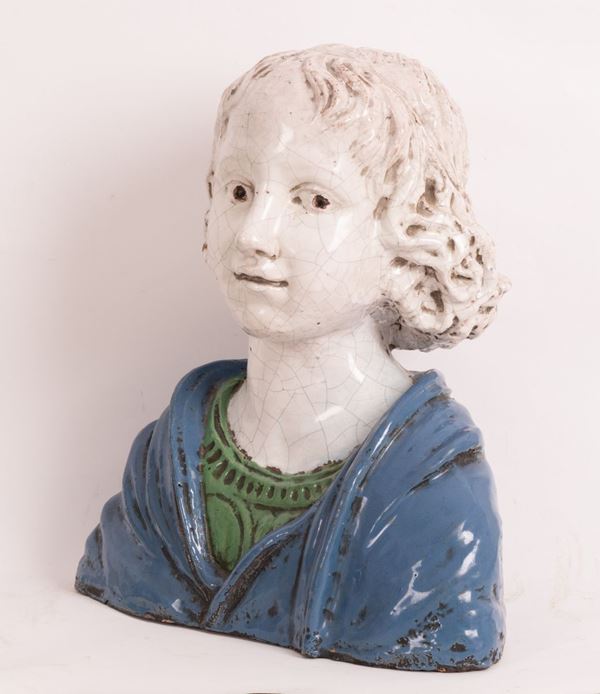 Busto di fanciullo in terracotta maiolicata