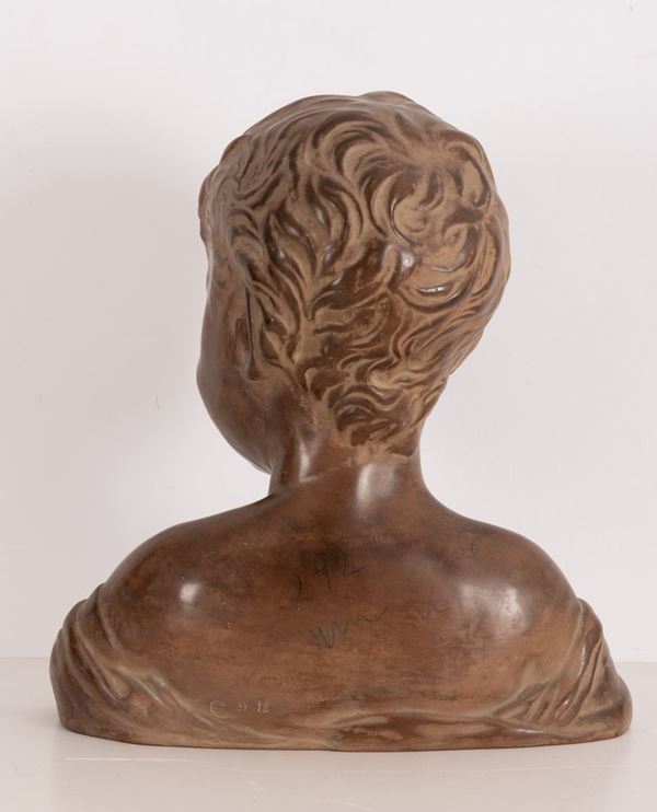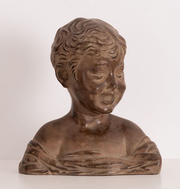 Calco in terracotta dipinta raffigurante volto di fanciullo