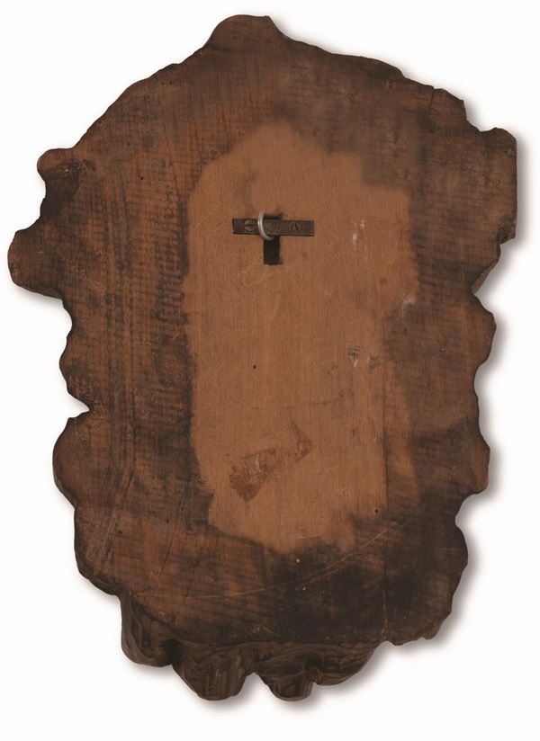 Bassorilievo in legno brunito raffigurante testa di San Pietro