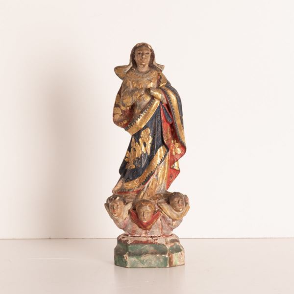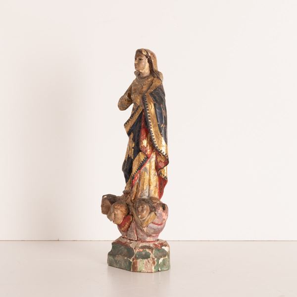 Scultura in legno policromo e dorato raffigurante l'Immacolata